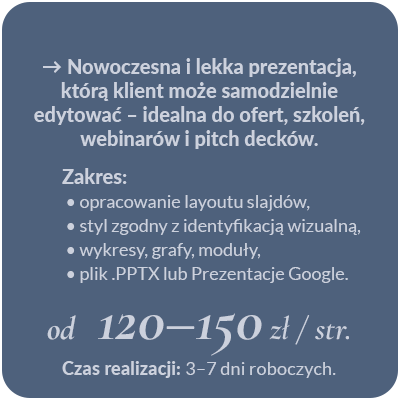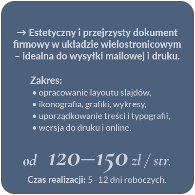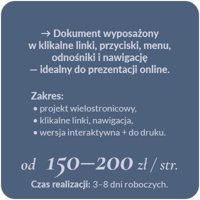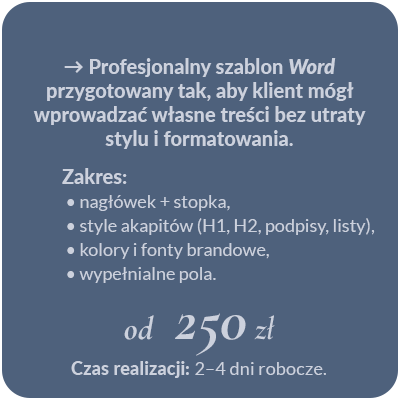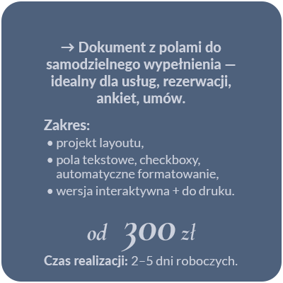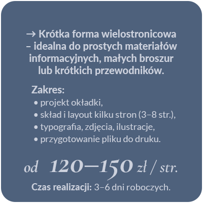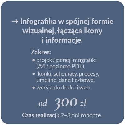 Wszystkie ceny są orientacyjne – zależą od zakresu zlecenia, terminu realizacji oraz ilości poprawek.