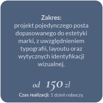 Jeśli dostarczysz konkretny brief i projekt nie wymaga wielu wersji oraz poprawek – koszt będzie minimalny.