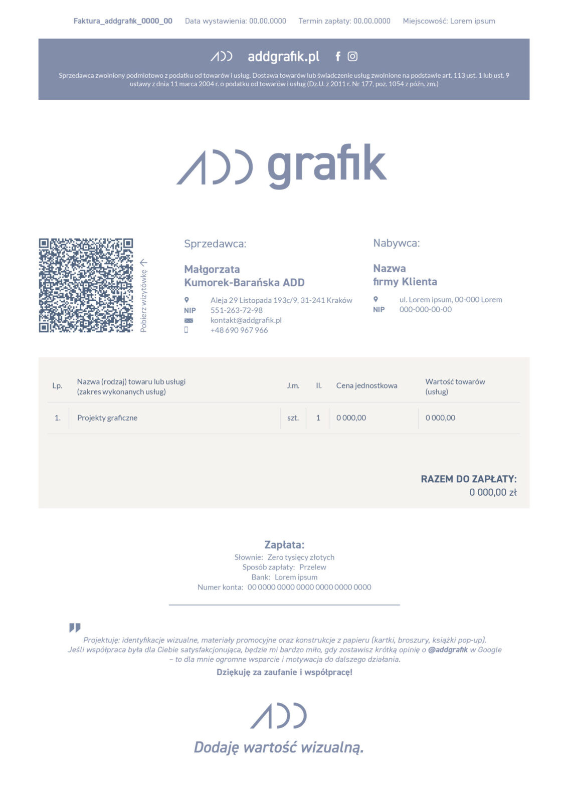 Na stronie addgrafik.pl korzystam z plików cookies, aby zapewnić Ci wygodne i przyjemne korzystanie z mojej witryny. Dzięki nim strona działa sprawnie, a treści i oferta mogą być lepiej dopasowane do Twoich potrzeb. W każdej chwili możesz zmienić swój wybór, klikając Spersonalizuj. Więcej informacji znajdziesz w Polityce prywatności.